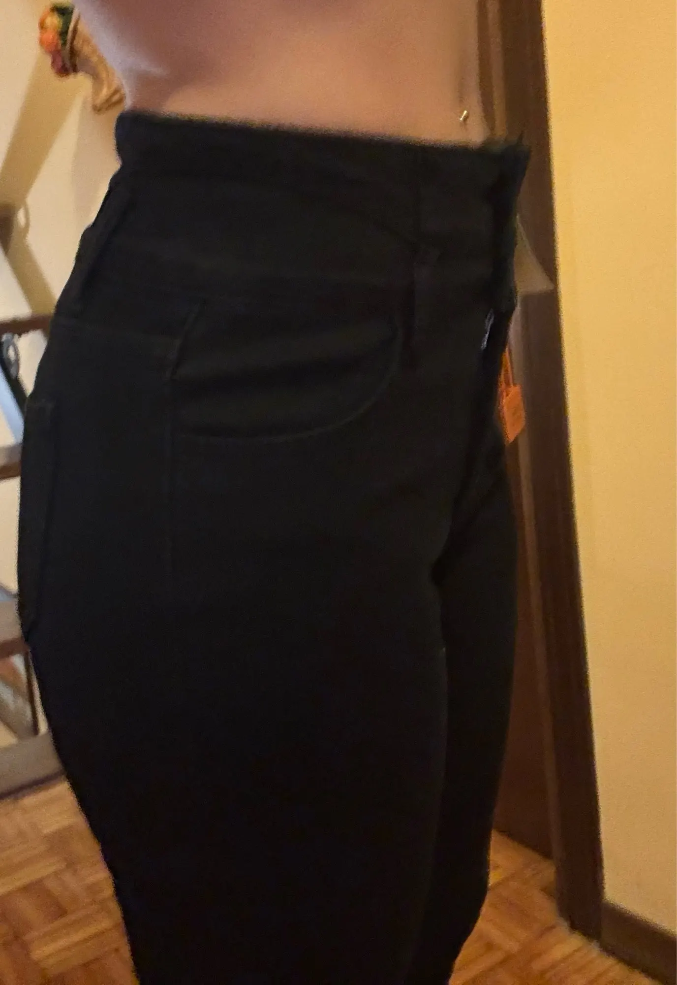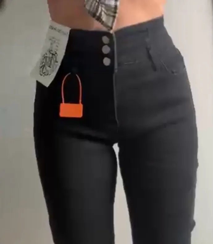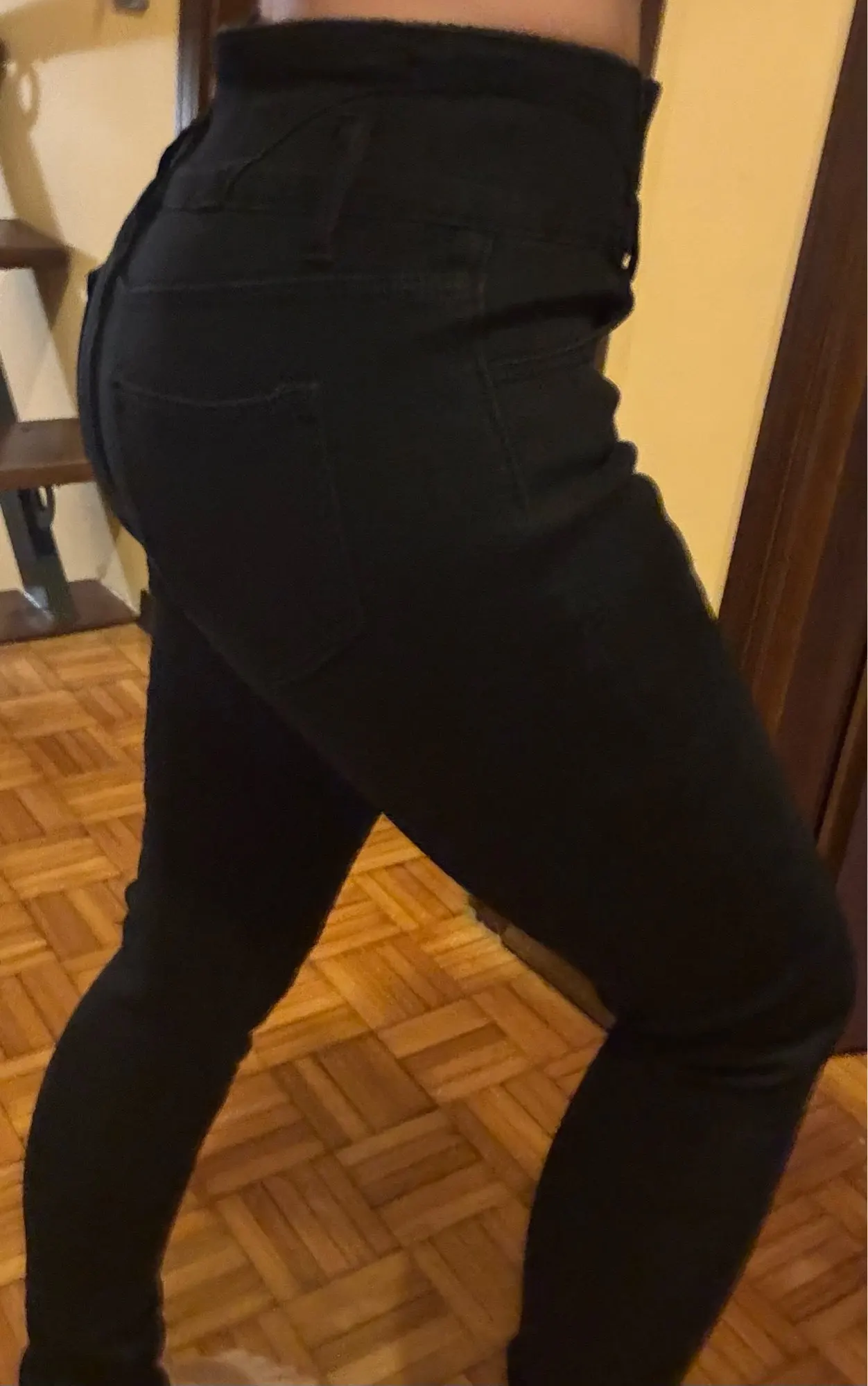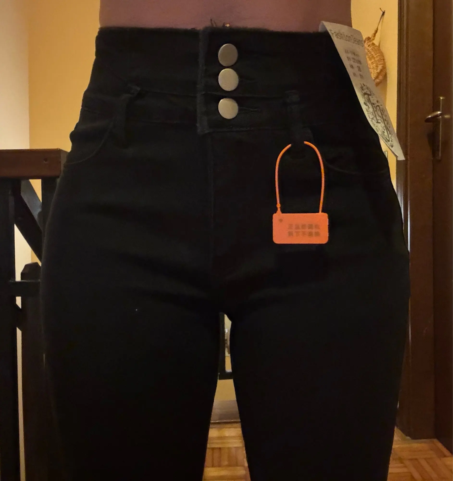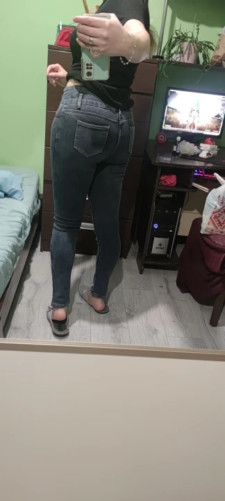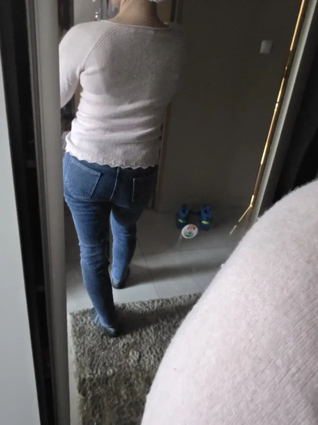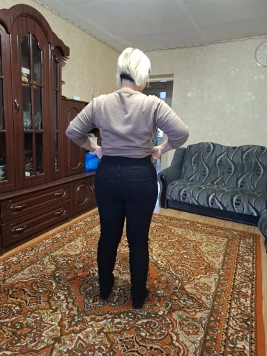 Super beautiful jeans, just like in the seller’s photos. I love them. I would like to have a second pair. I highly recommend them. The size is perfect for a European size. (I wear European size L) It doesn’t tighten around the stomach. The material is elastic, very soft on the inside and super pleasant on the skin.