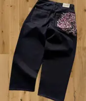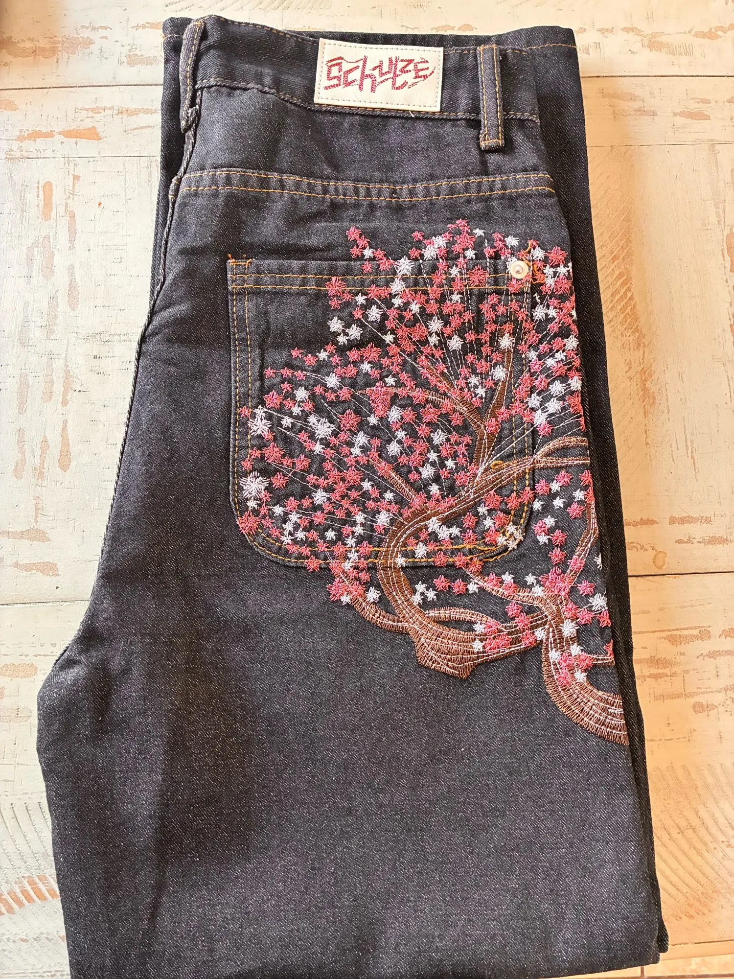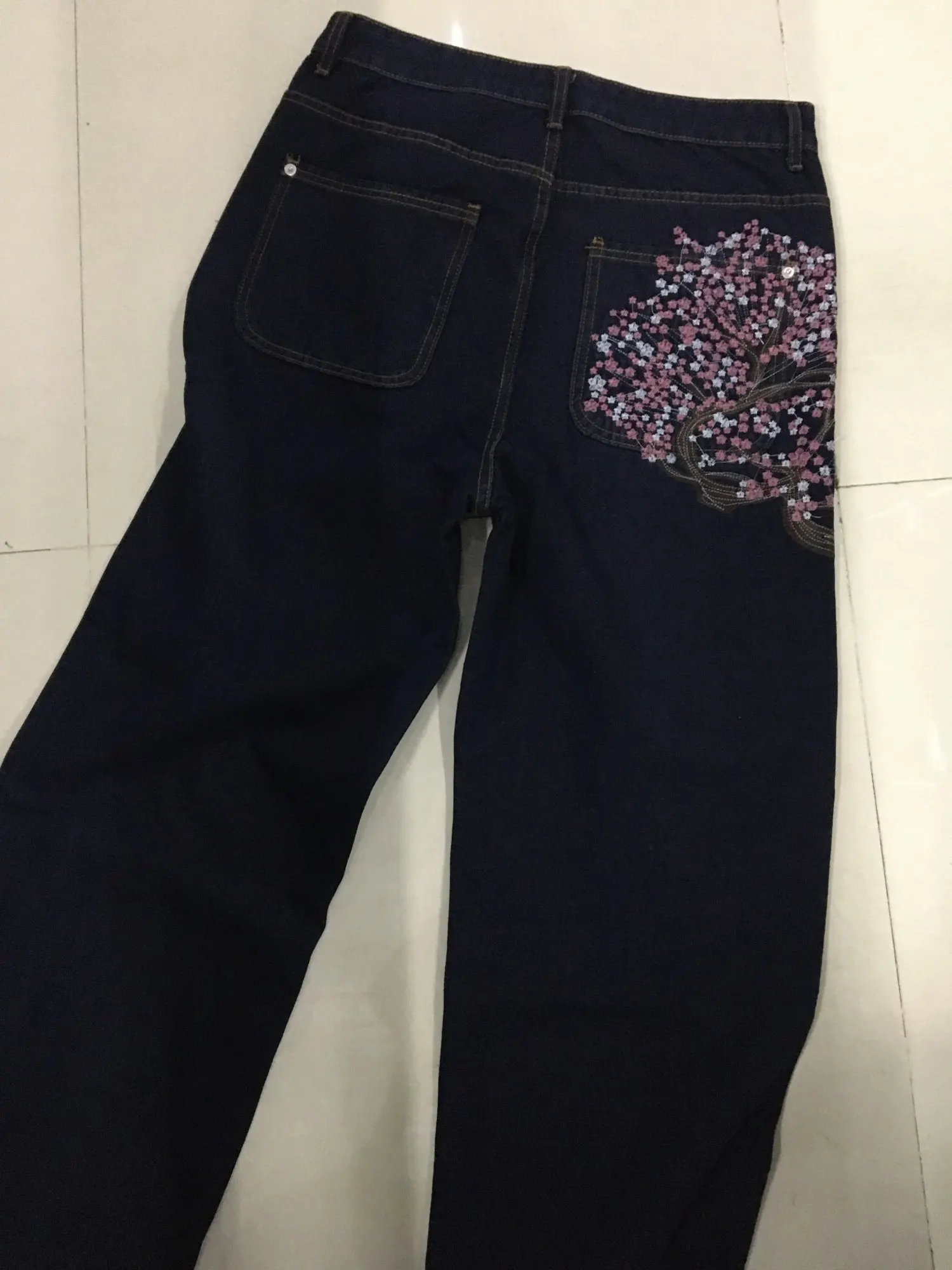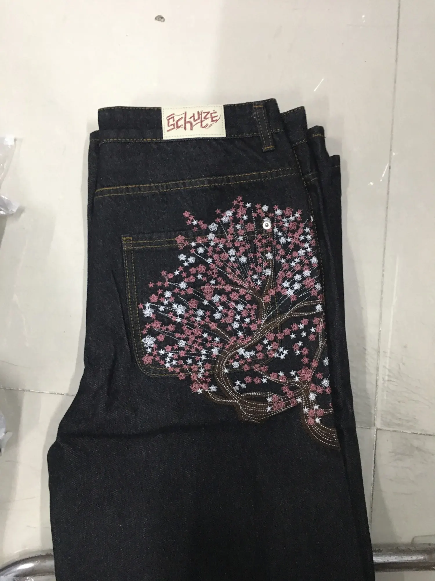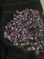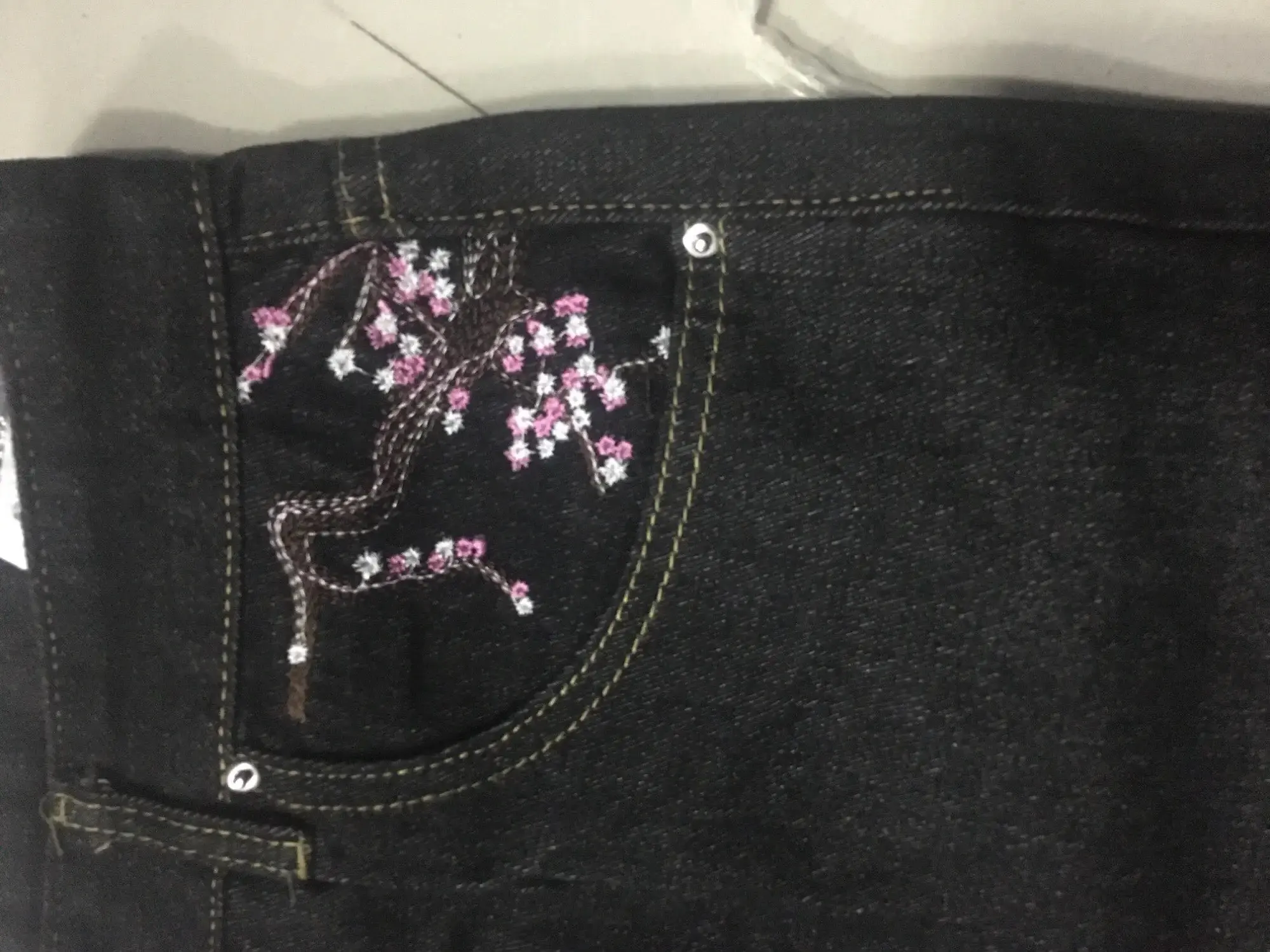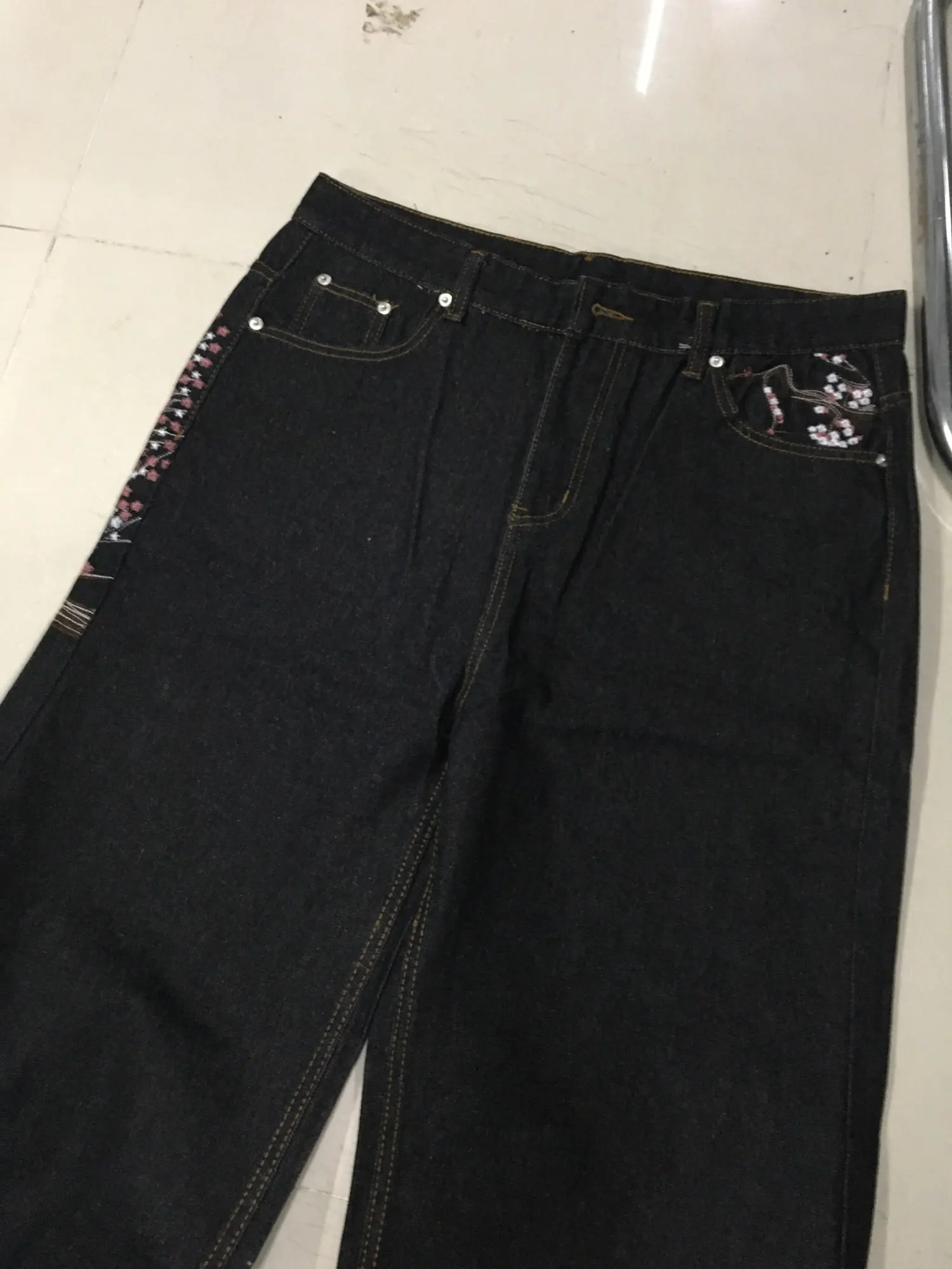 Cherry Blossom Selvedge Embroidery Denim Pants Y2k Retro Men Casual Baggy Straight Wide Leg Jeans High Quality Hiphop Streetwear